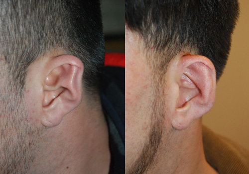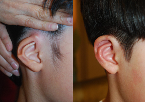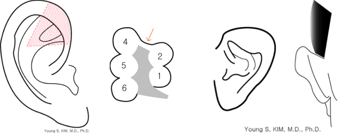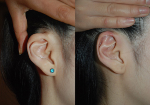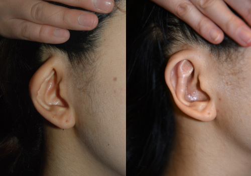 수축귀의 치료는 수축된 정도(접혀진 정도)에 따라 치료 방법이 달라지는데 접힌 정도가 심하지 않다면 접힌 귀연골을 펴지게 하여 모양을 만들면 되지만 접힌 정도가 심해서