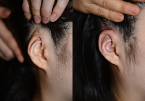 매몰귀의 치료는 연골을 잡아 당기는 조직을 풀어주고 귀상부 쪽의 피부를 보충해주어 귀상부가 자연스럽게 돌출될 수 있도록 하는 것입니다.